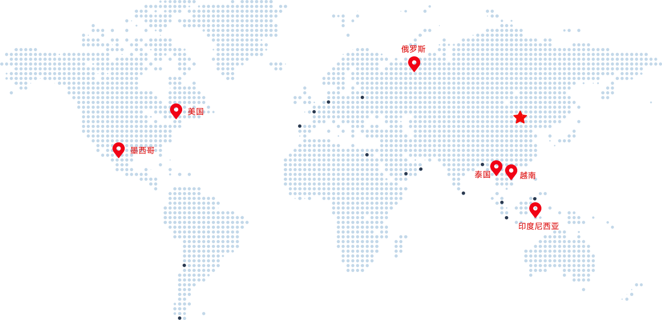 美國、墨西哥、德國、法國、英國、葡萄牙、波蘭、捷克、俄羅斯、日本、印度尼西亞、泰國、馬來西亞、越南、新加坡、菲律賓、巴基斯坦、印度、孟加拉國、斯里蘭卡、沙特阿拉伯、阿聯(lián)酋、埃及、安哥拉、南非等世界各地