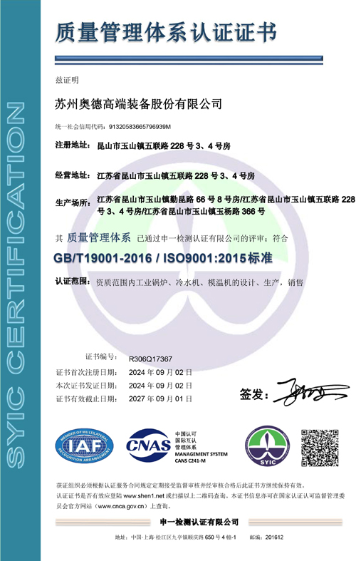 奧德創(chuàng)立于2004年深圳(深圳市奧德機(jī)械有限公司),2007年在蘇州成立總部(蘇州奧德高端裝備股份有限公司),一直專(zhuān)注于工業(yè)溫度控制領(lǐng)域,是集研發(fā)、生產(chǎn)銷(xiāo)售為一體的溫度控制設(shè)備制造國(guó)家高新技術(shù)、專(zhuān)精特新企業(yè)。
